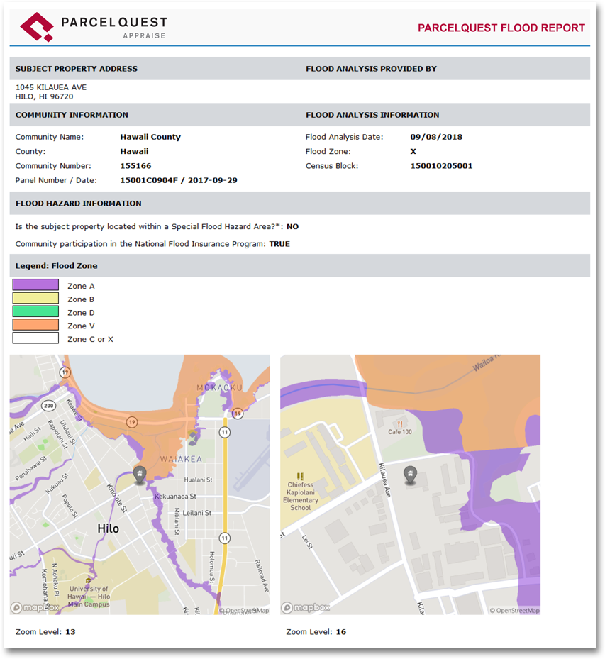 If you need updated flood layer information on your parcel of interest, ParcelQuest Appraise has what you’re looking for. See your property of interest in relation to the Flood Zone Layer or print and download our Flood Reports directly from our Property Profile page!